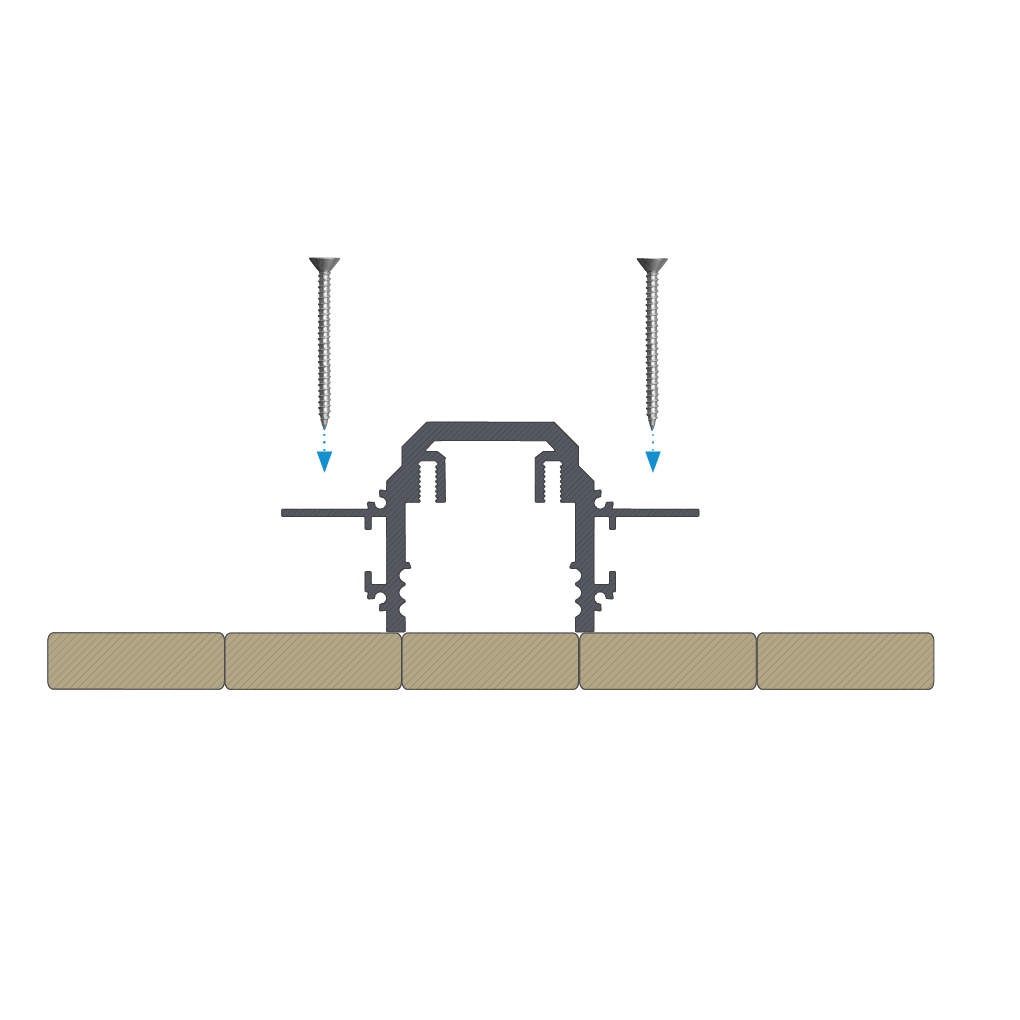 Instrukcja montażu profilu LED DURO w szalunku betonowym przy użyciu wkrętów.