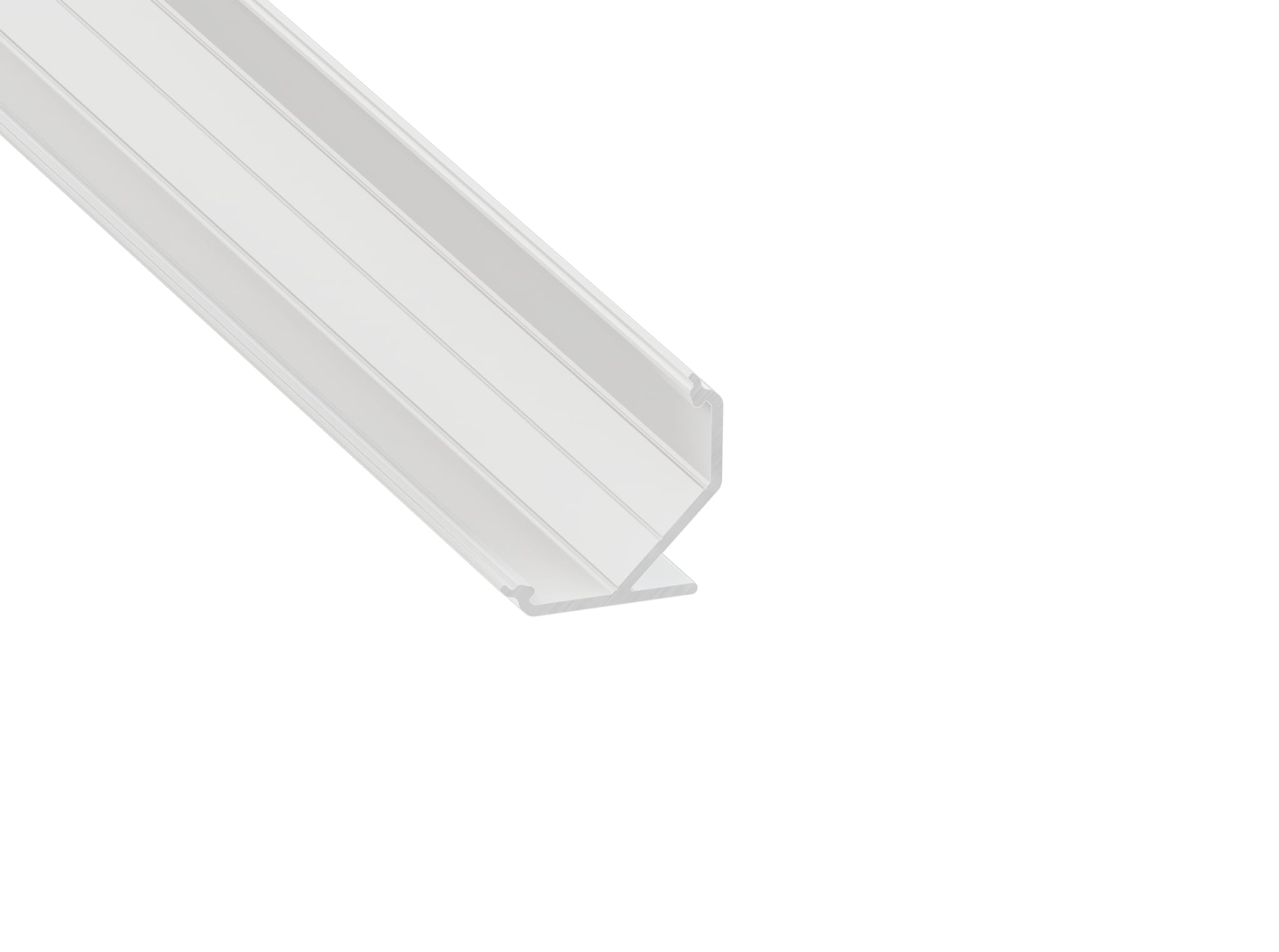 Profil aluminiowy LUMINES AGO przeznaczony do montażu nawierzchniowego w projektach wymagających skierowania światła pod kątem 45°.