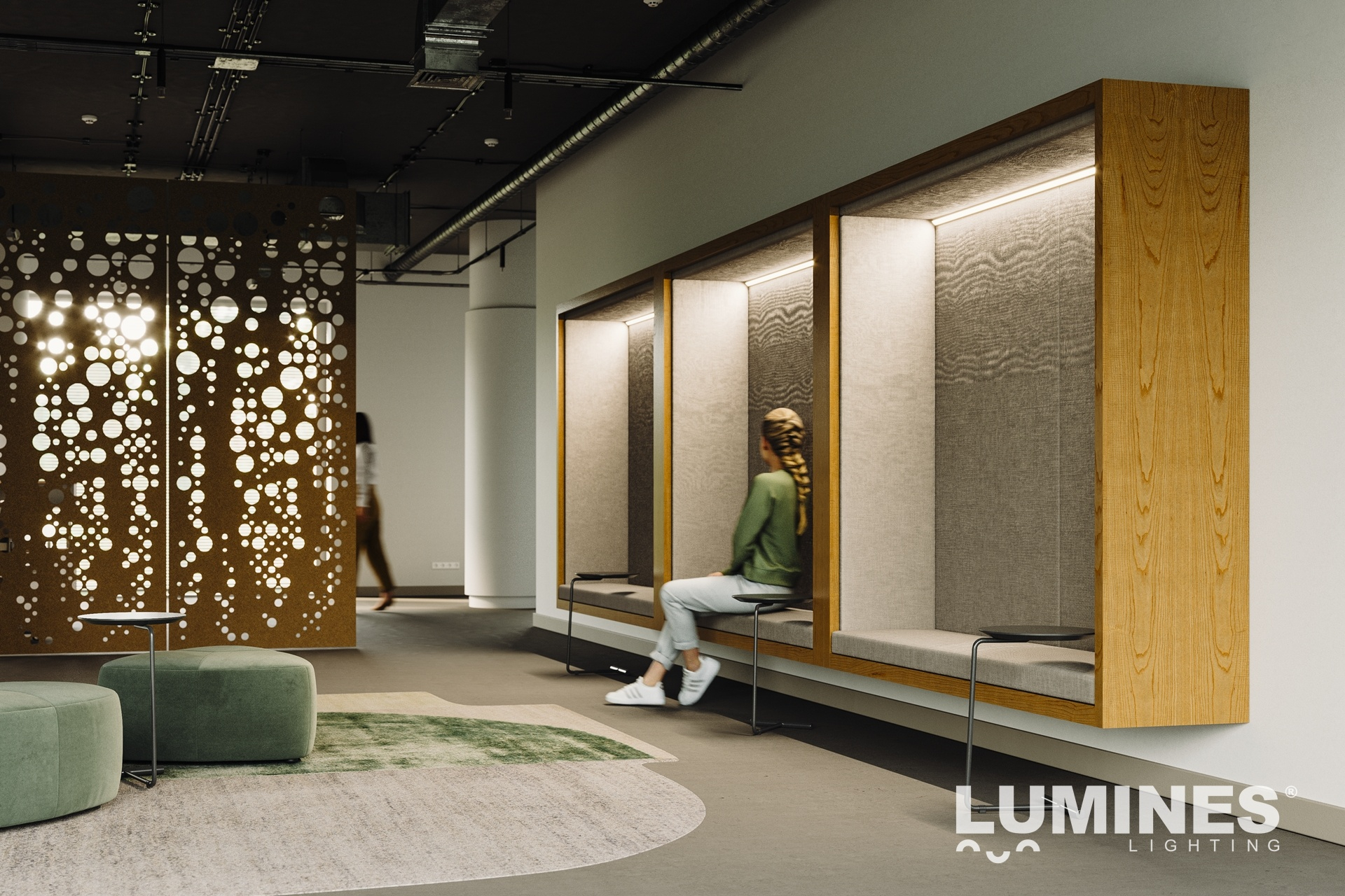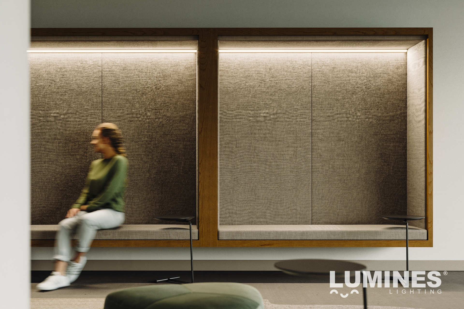 Profil aluminiowy LUMINES AGO przeznaczony do montażu nawierzchniowego w projektach wymagających skierowania światła pod kątem 45°.