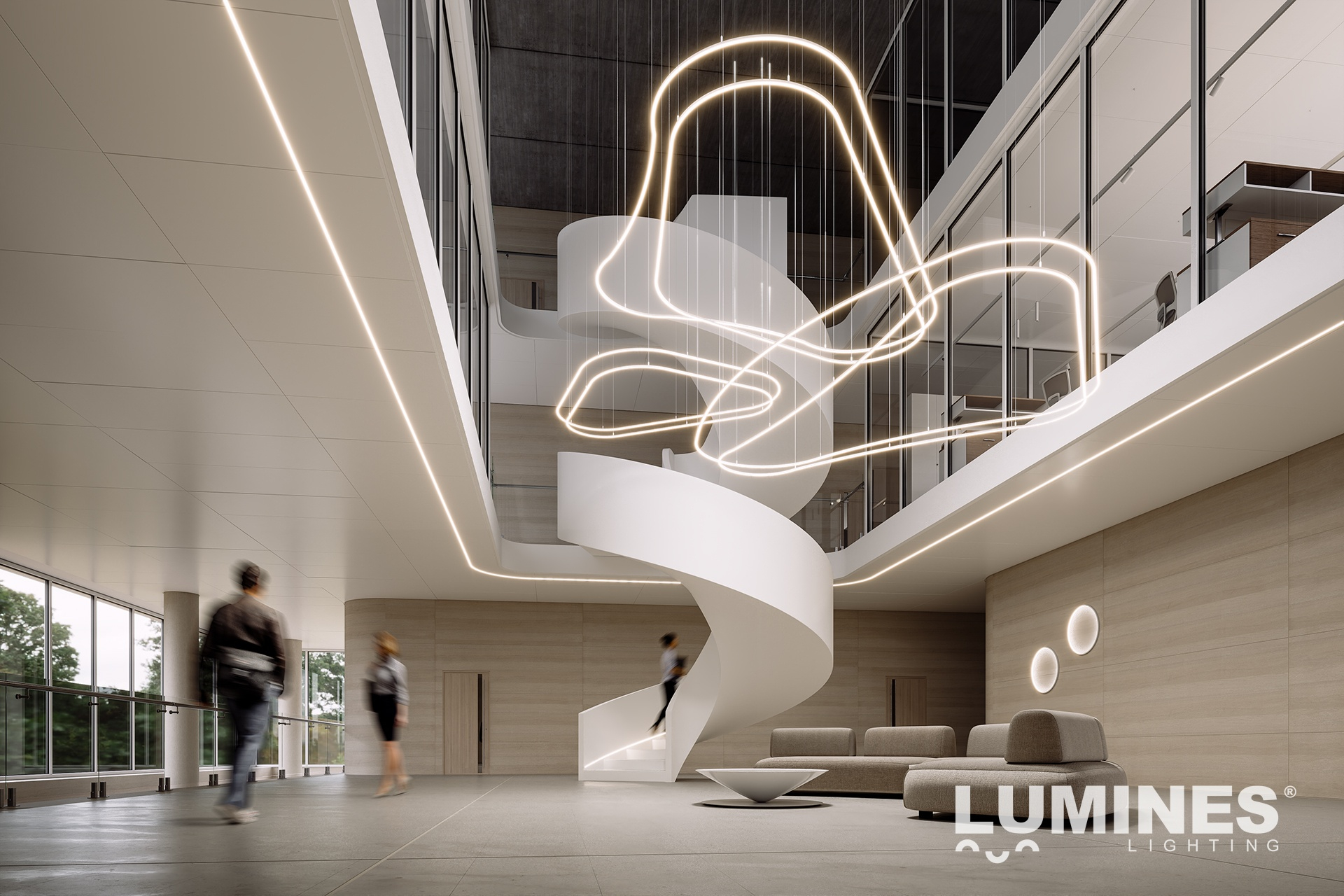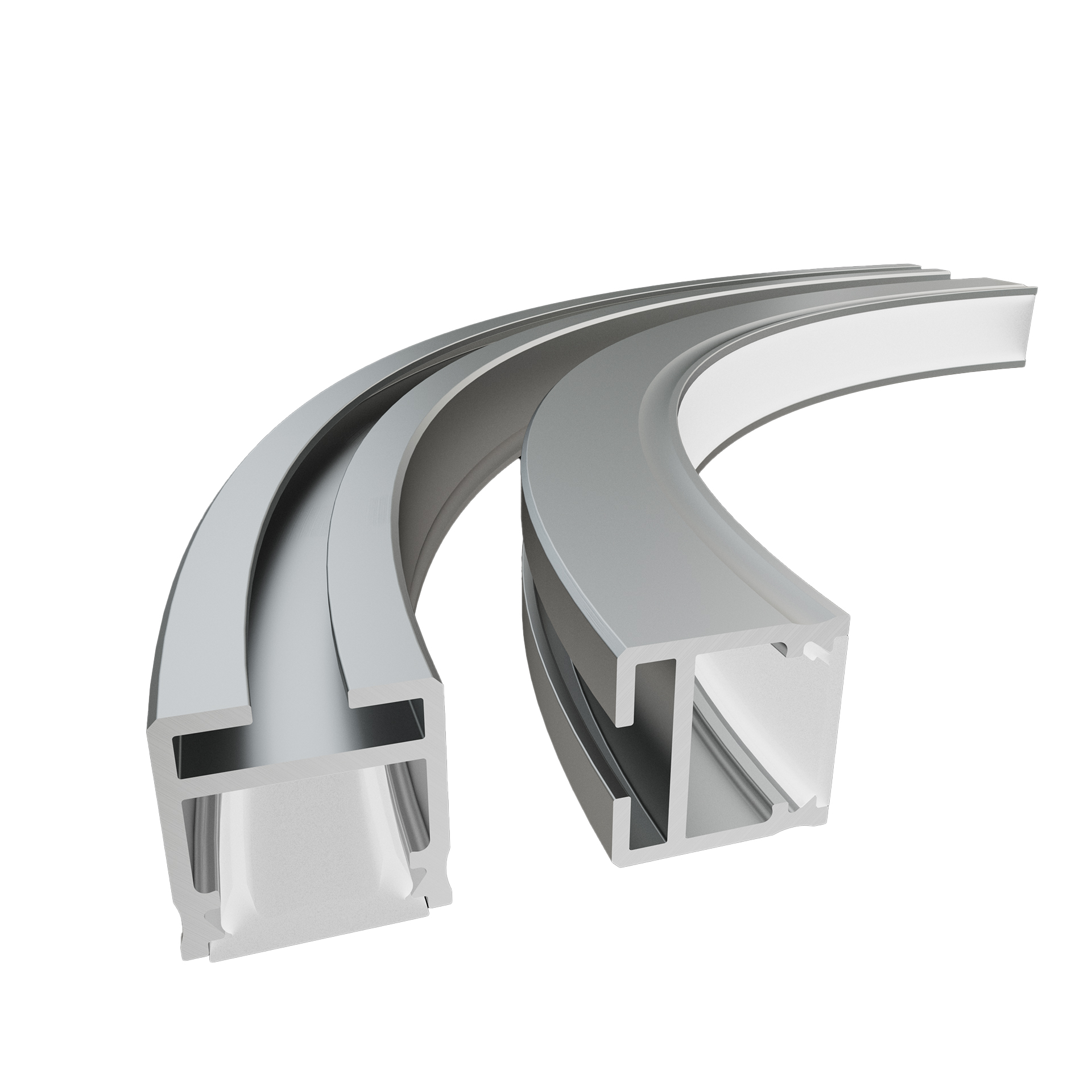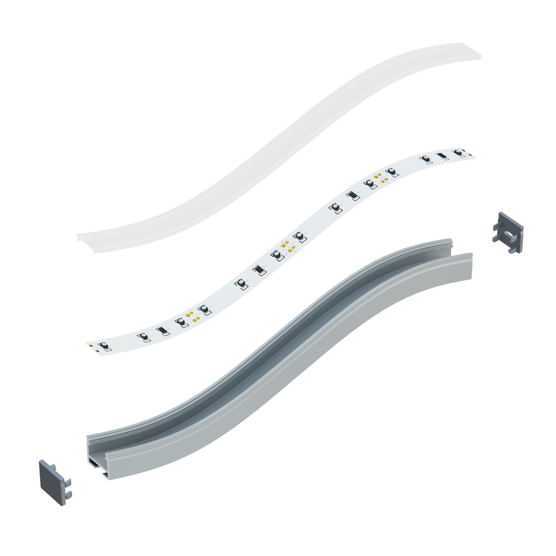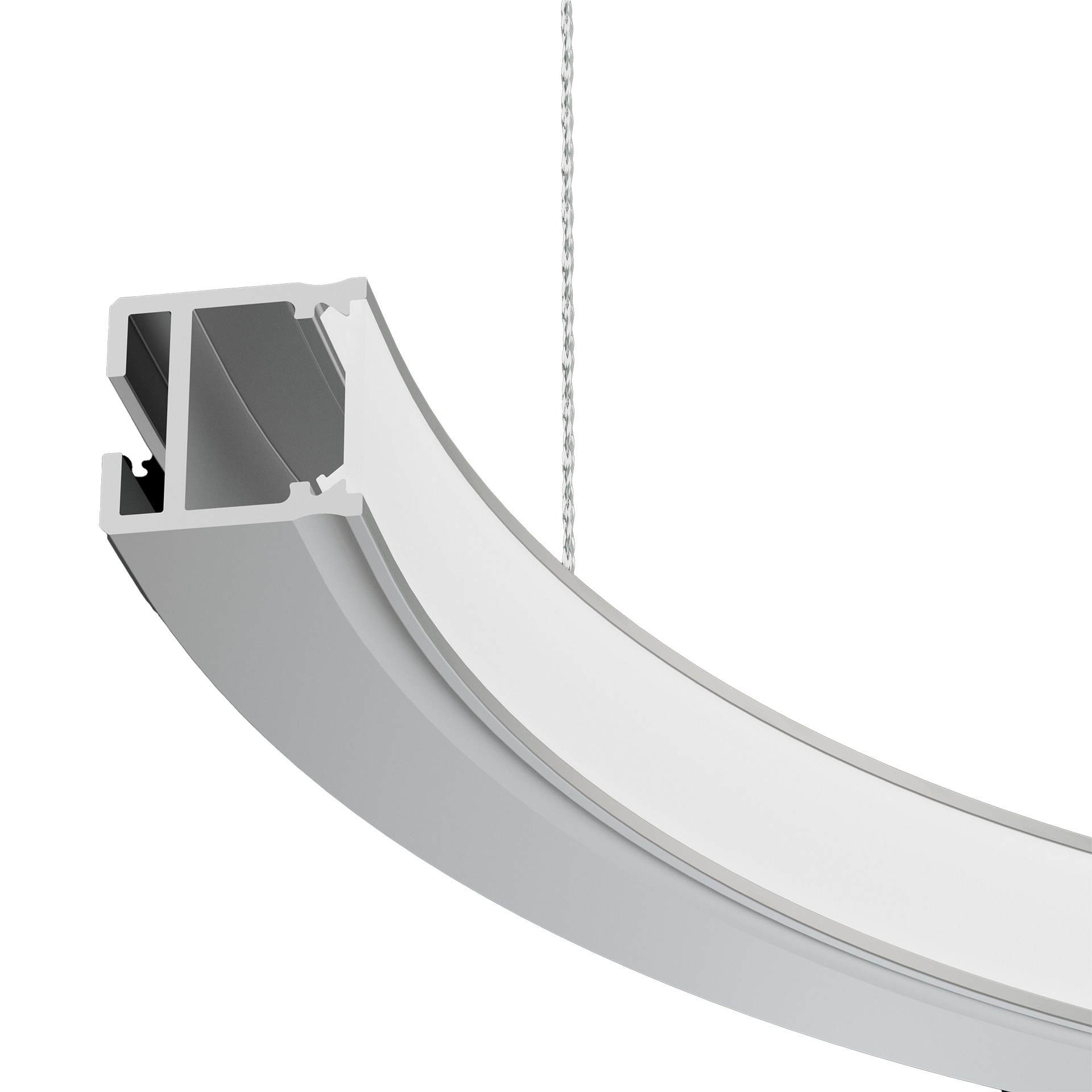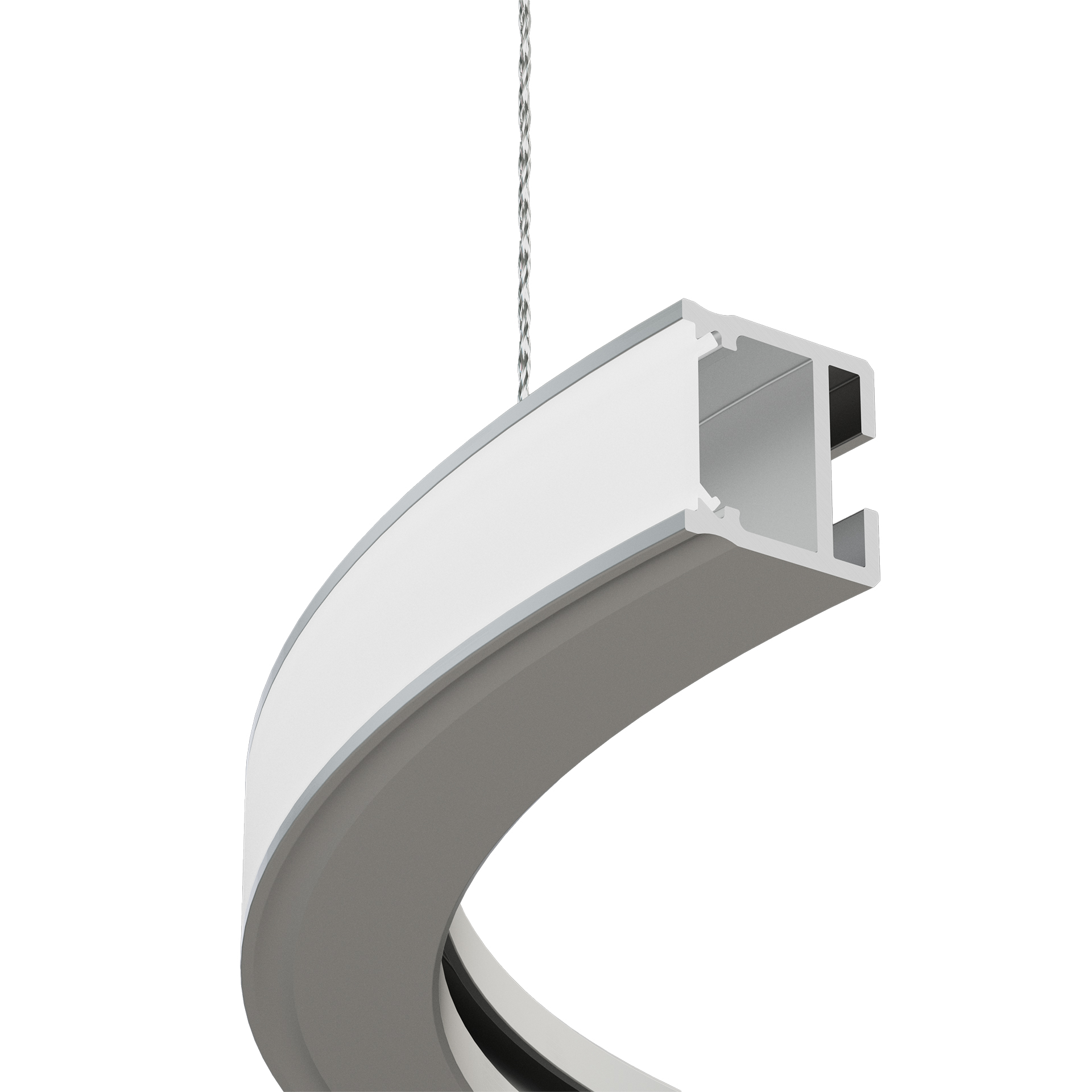 Specjalistyczny profil LED do montażu powierzchniowego, zaprojektowany z myślą o gięciu w obu płaszczyznach. Umożliwia tworzenie ciągłych, zakrzywionych linii świetlnych, precyzyjnie dopasowanych do geometrii form architektonicznych, bez degradacji parametrów mechanicznych, optycznych ani estetycznych oprawy. System przewiduje zastosowanie łączników oraz montaż podwieszany, co zapewnia wysoką elastyczność konfiguracji i łatwą integrację z różnymi typami przestrzeni.
