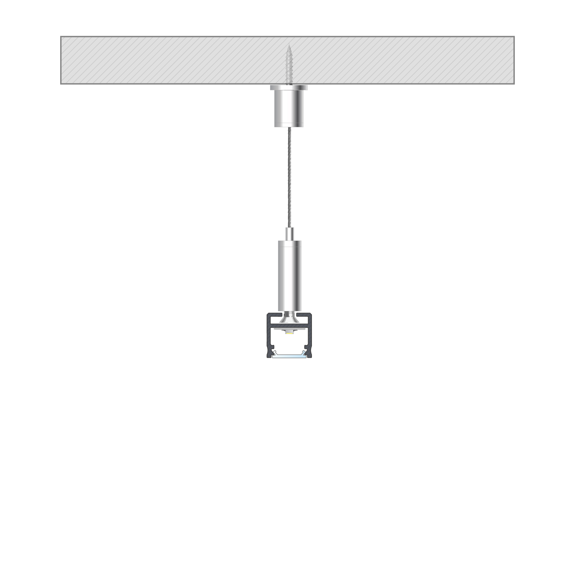 Efekt końcowy montażu profilu FLEXA z kloszem BASIC przy wykorzystaniu zawiesi