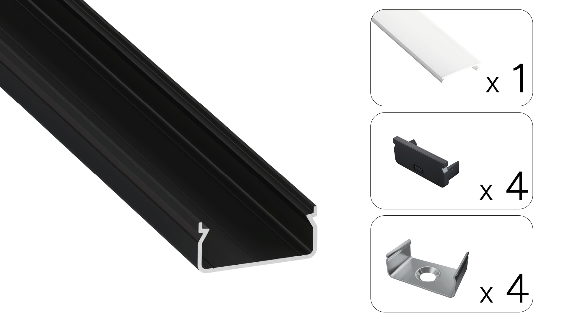 Zestaw zawiera: 1 x Profil LED EGEN, 1 x Klosz LED M22, 4 x Zaślepka EGEN, 4 x Uchwyt montażowy EGEN