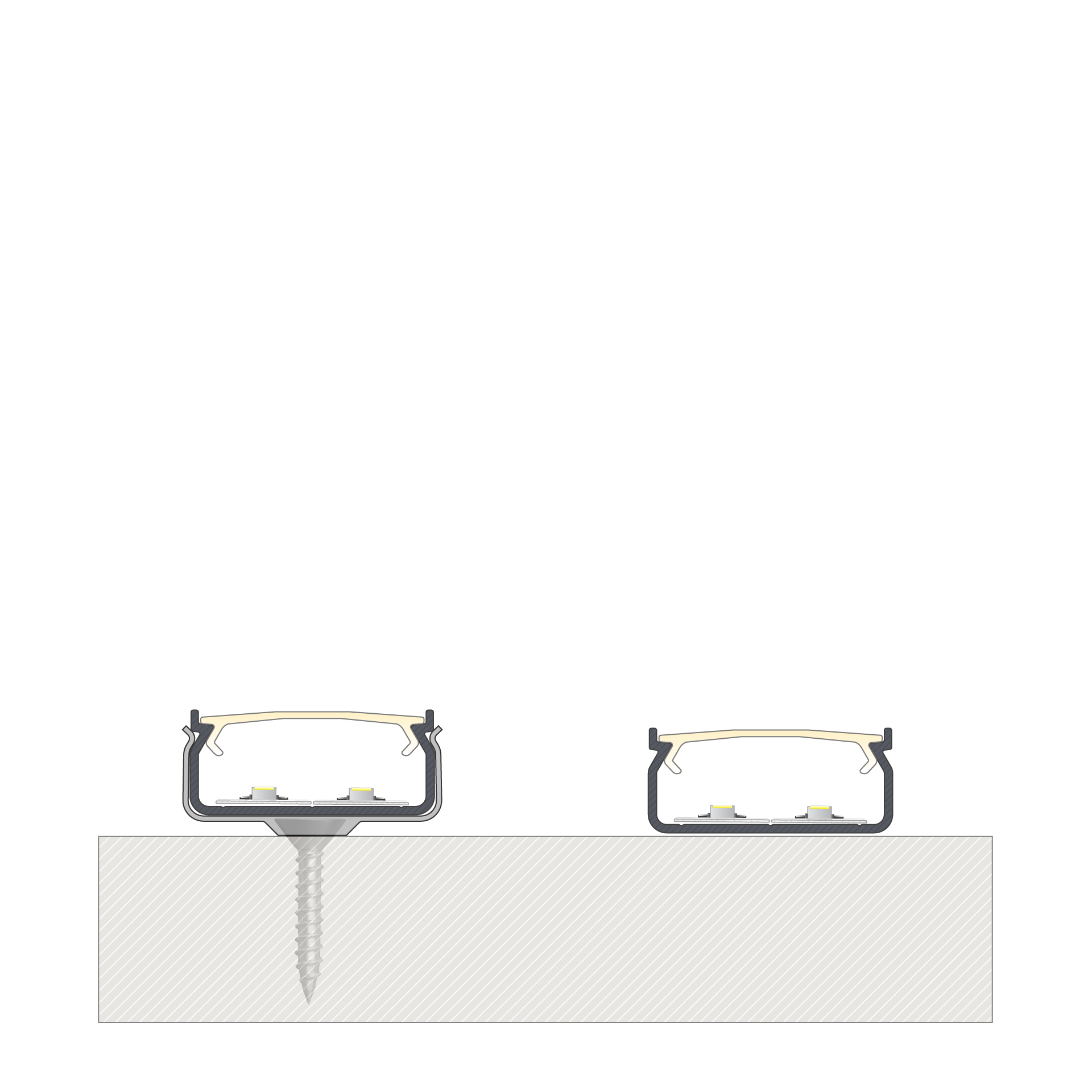 Profil LED nawierzchniowy, dwutaśmowy, do zastosowań w przestrzeniach biurowych i domowych. Przeznaczony do tworzenia oświetlenia dekoracyjnego.