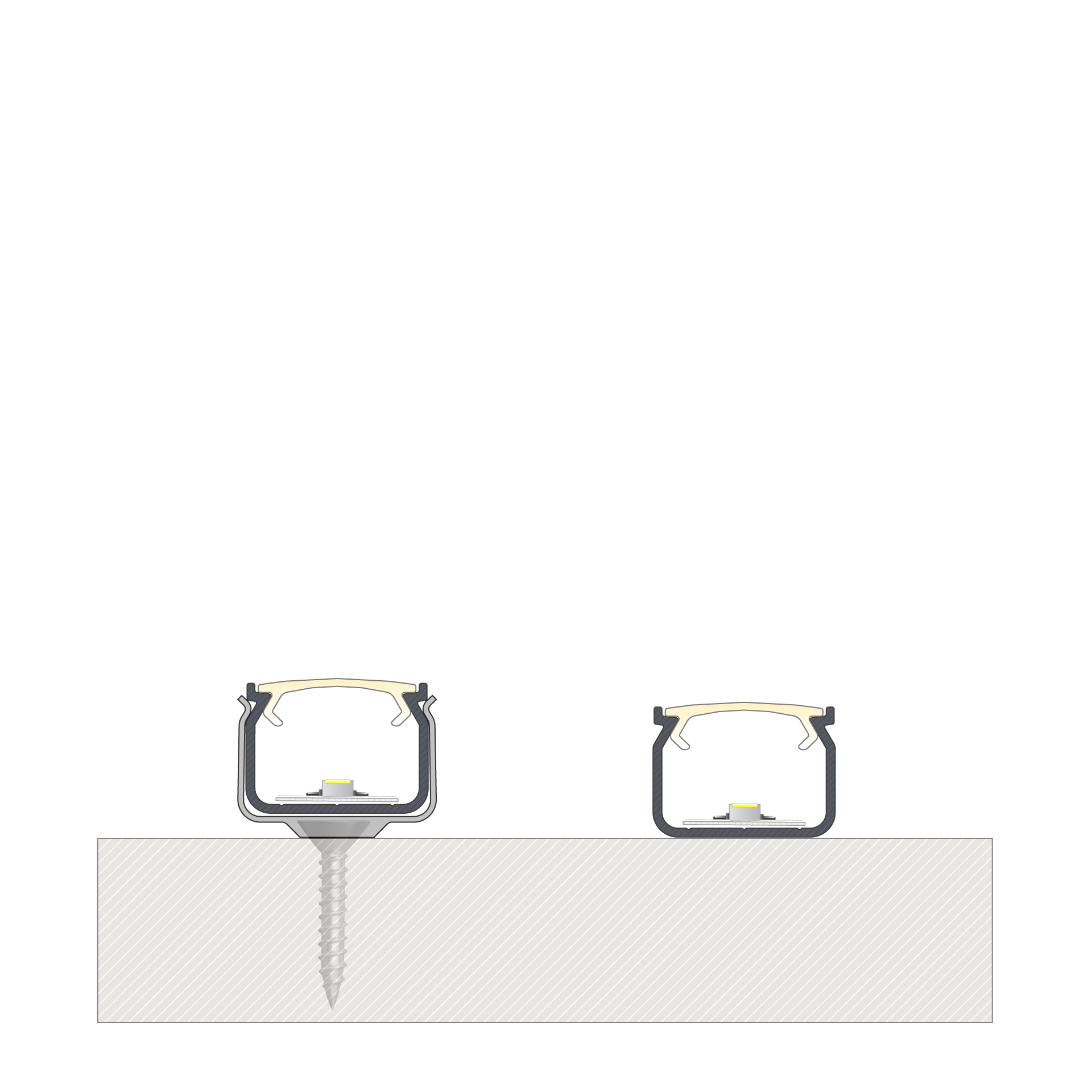 Profil LED nawierzchniowy do zastosowań w przestrzeniach biurowych i domowych. Przeznaczony do tworzenia oświetlenia dekoracyjnego w meblarstwie i przy wykończeniach wnętrz.