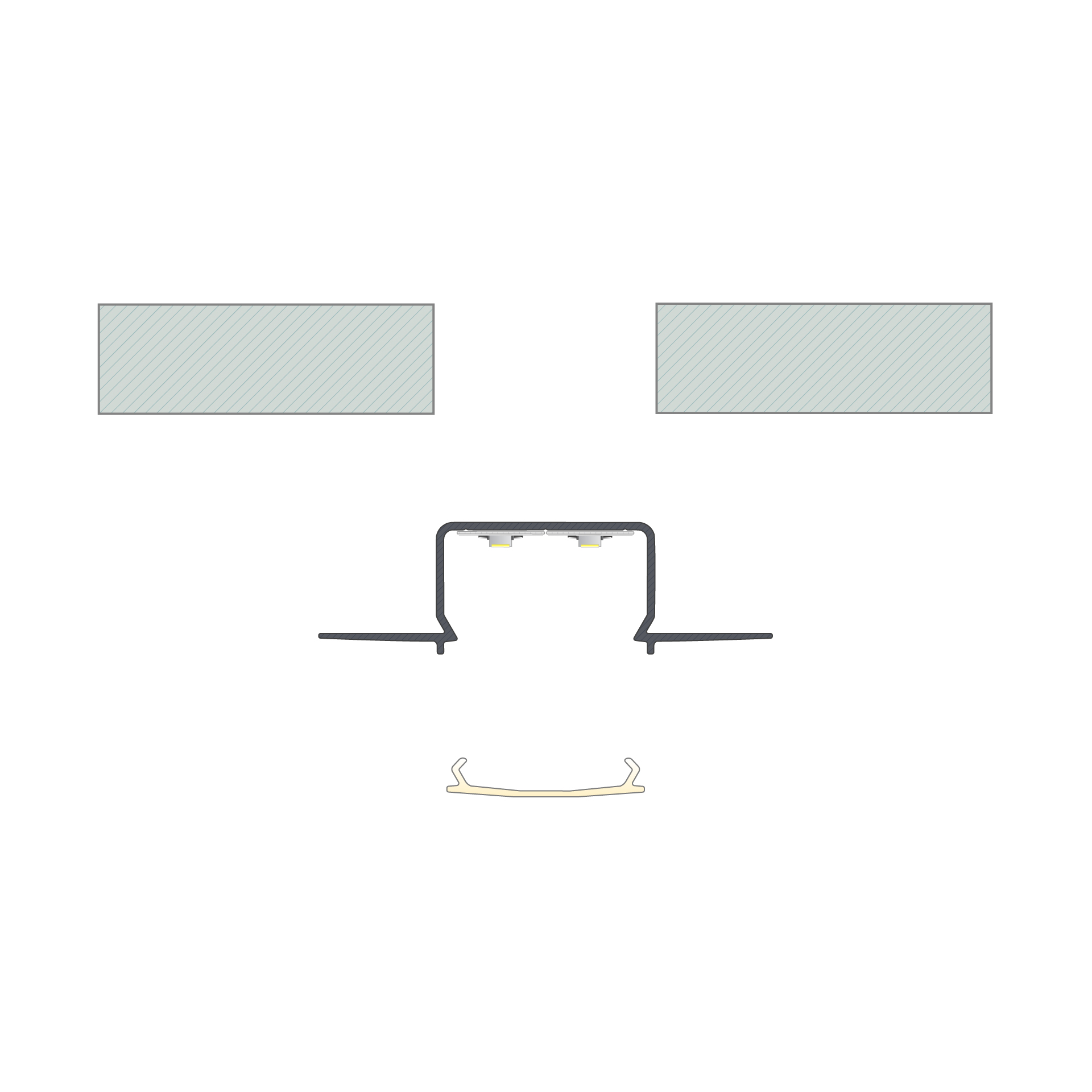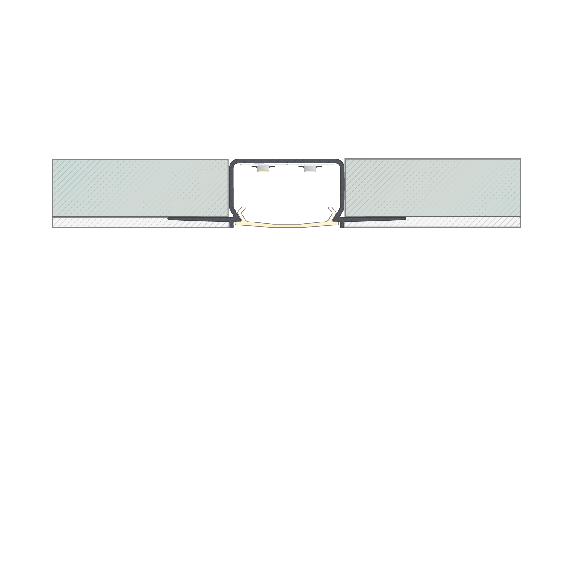 Dwutaśmowy profil LED do zabudowy w płytach g-k. Gładź szpachlowa przenika przez perforację w kołnierzach, co zapewnia szybki, bezproblemowy i trwały montaż.