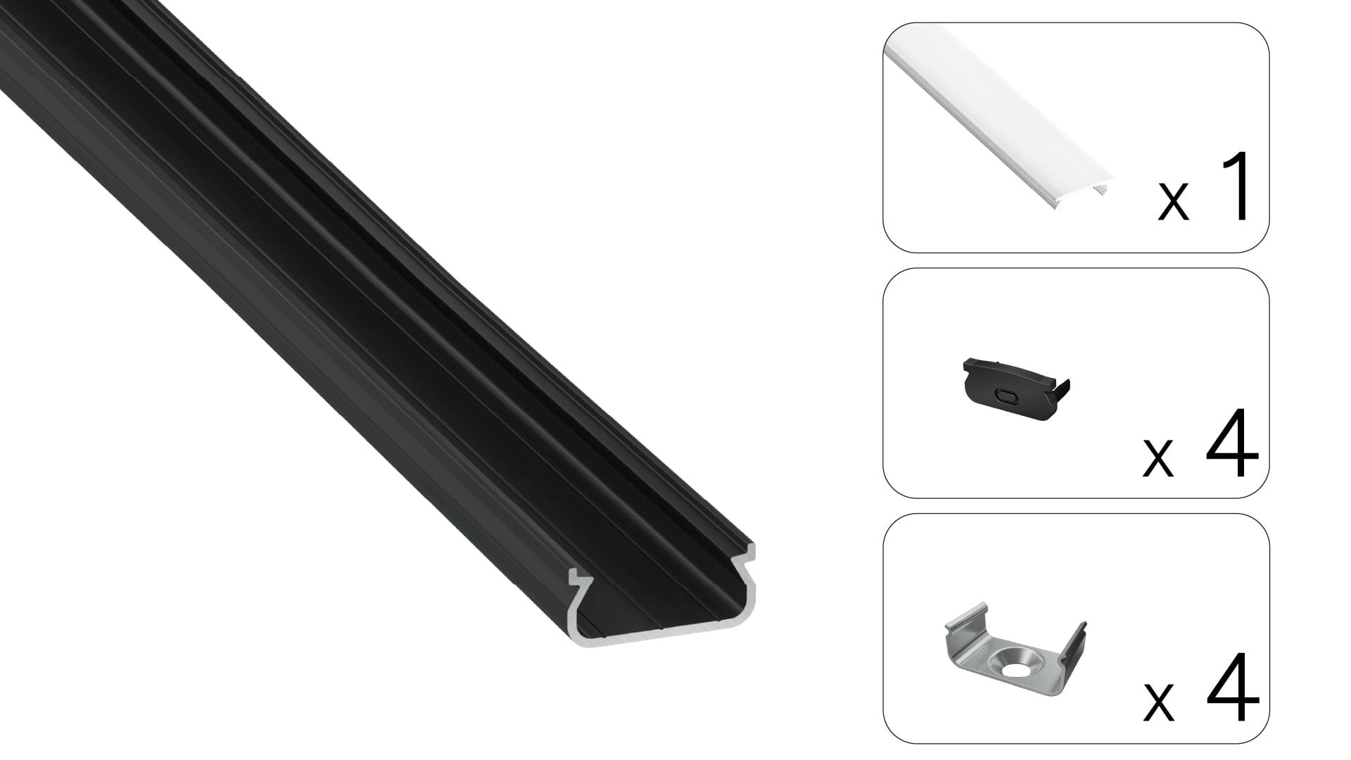 Zestaw zawiera: 1 x Profil LED ORRE, 1 x Klosz LED S14, 4 x Zaślepka ORRE, 4 x Uchwyt montażowy ORRE