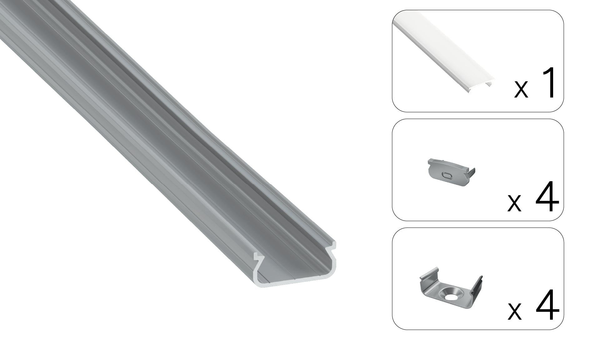 Zestaw zawiera: 1 x Profil LED ORRE, 1 x Klosz LED S14, 4 x Zaślepka ORRE, 4 x Uchwyt montażowy ORRE