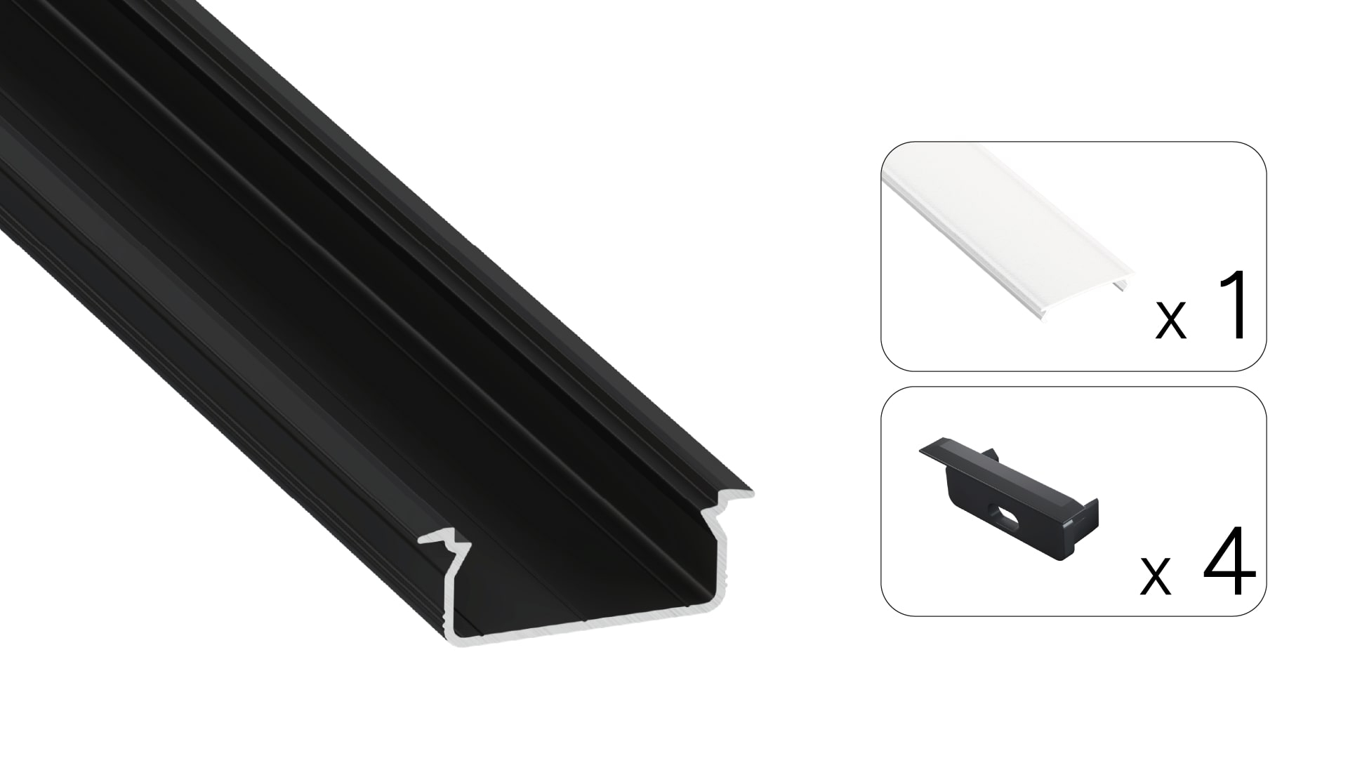 Zestaw zawiera: 1 x Profil LED TVED, 1 x Klosz LED M22, 4 x Zaślepka TVED