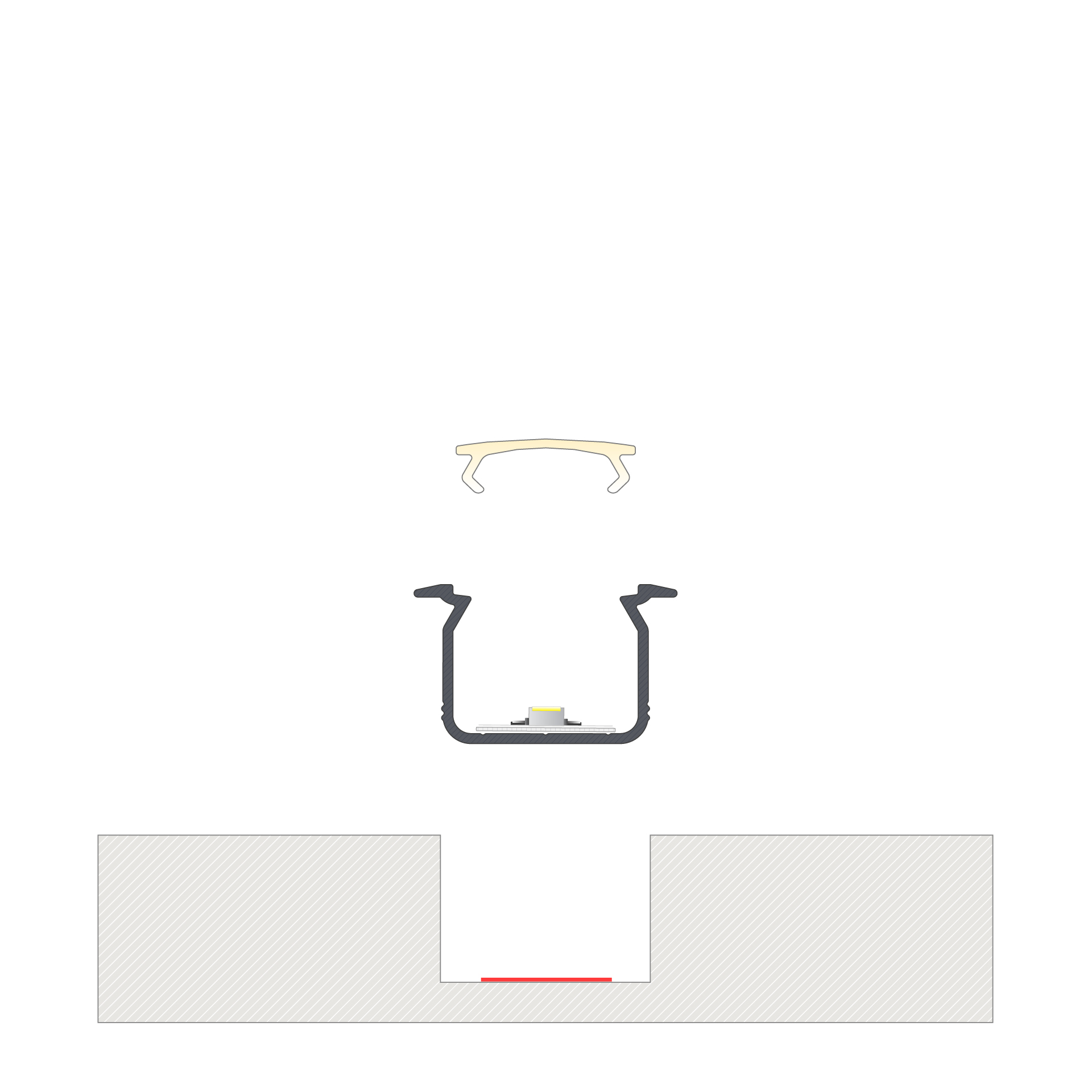 Profil LED wpuszczany do zastosowań w kuchniach i strefach ekspozycyjnych. Stosowany do oświetlania szaf, blatów i innych powierzchni roboczych.